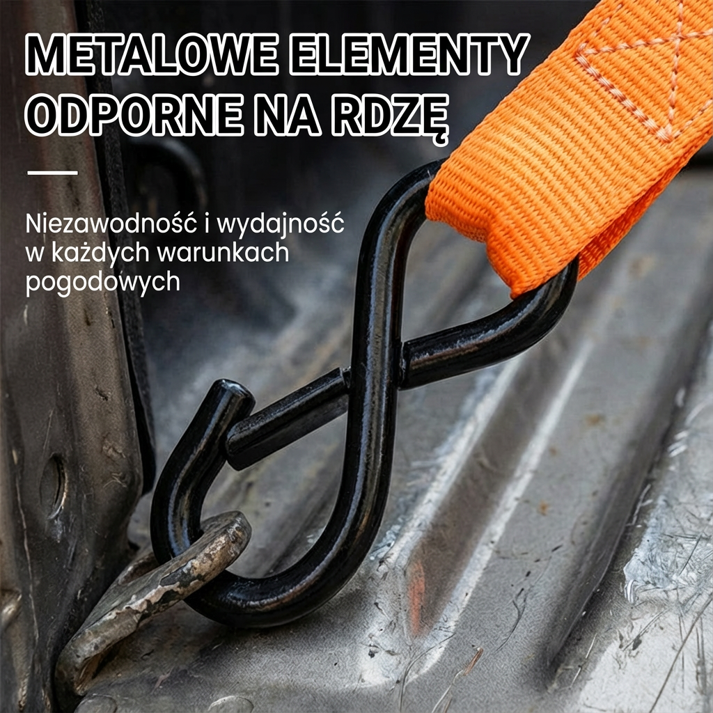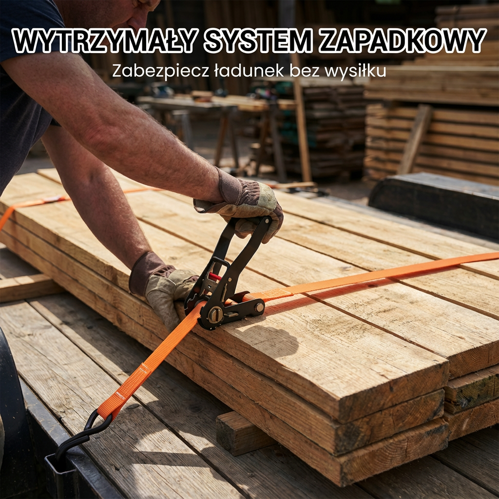WYDAJNY MECHANIZM ZAPADKOWY - Przyjazna konstrukcja zapadki umożliwia szybkie i łatwe napinanie. Osiągnij maksymalne napięcie przy minimalnym wysiłku, zapewniając solidne i bezpieczne mocowanie ładunku, bez kłopotliwych węzłów.